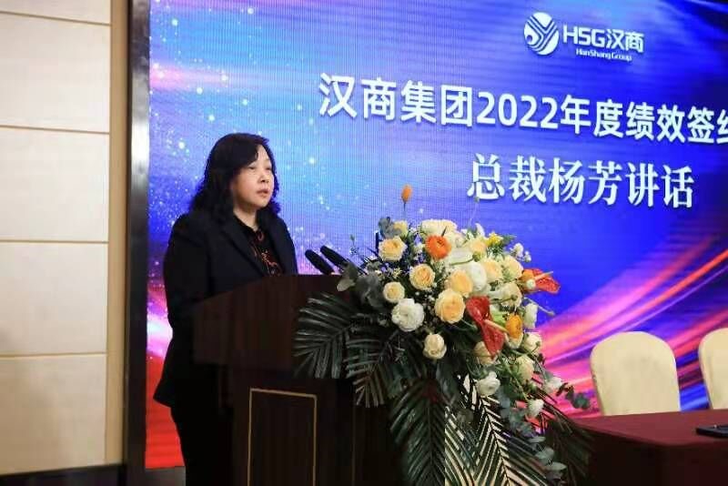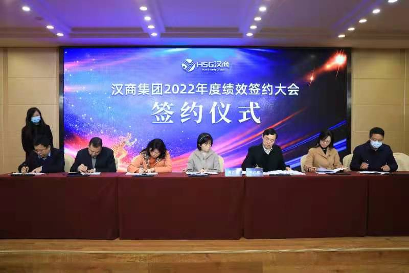 2月28日下午,漢商集團2022年度績效簽約大會在望鶴酒店(王家灣店)10樓會議廳召開。集團公司全體高管、高級經(jīng)理及相關(guān)分子公司負責人到場參會。會議由集團公司副總裁馮帆主持。
