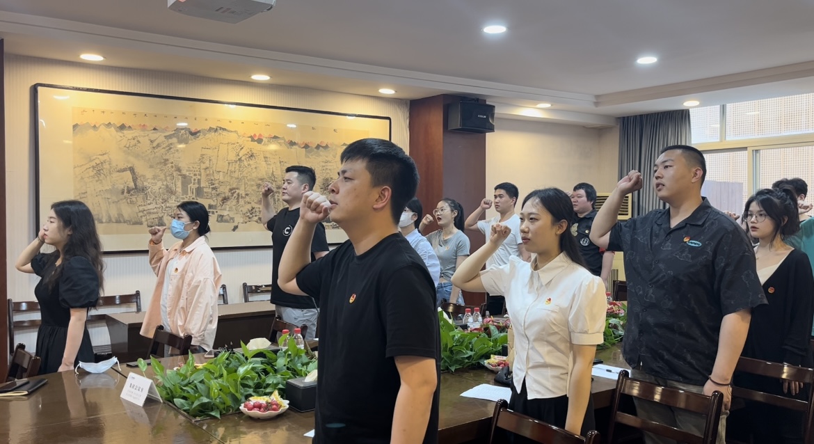 在《光榮啊,中國(guó)共青團(tuán)》的激昂歌曲聲中,活動(dòng)拉開(kāi)序幕。20名團(tuán)員青年代表面對(duì)鮮紅的團(tuán)旗,高舉右拳,重溫入團(tuán)誓詞,重新感受初為團(tuán)員莊嚴(yán)宣誓時(shí)的光榮和喜悅,再一次接受“沉浸式”的精神洗禮。